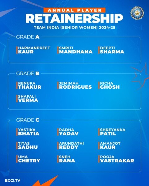 BCCI has announced a 16-player central contract list for the 2024-25 season. The Board of